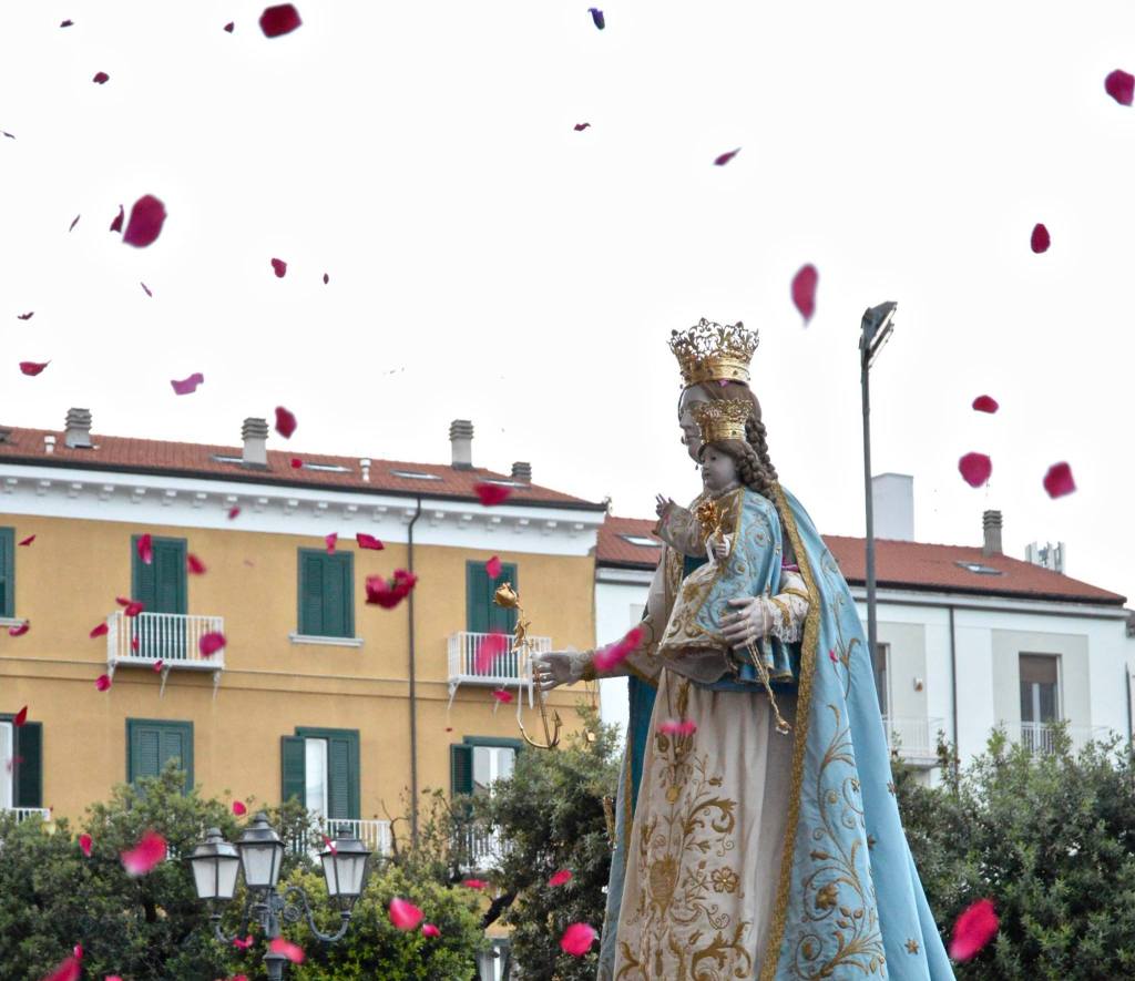Maggio il mese di Maria Il pomeriggio del 31 maggio, una solenne processione si snoda per le vie del borgo antico e del centro cittadino, portando la statua raffigurante la Madonna dei Monti, venerata nella Chiesa di Santa Maria Maggiore. Un evento pienamente sentito dalla popolazione devota, che, nel tempo, ha arricchito la sfilata in omaggio alla Madonna con un elemento molto caratteristico: l’Infiorata. Nella mattinata, commercianti ed abitanti residenti nelle vie del borgo, come vuole la tradizione, decorano il manto stradale creando delle suggestive composizioni con zolle d’erba e petali di fiori raffiguranti simboli religiosi, forme geometriche, rappresentazioni floreali ed invocazioni a Maria e alla Sacra Famiglia.